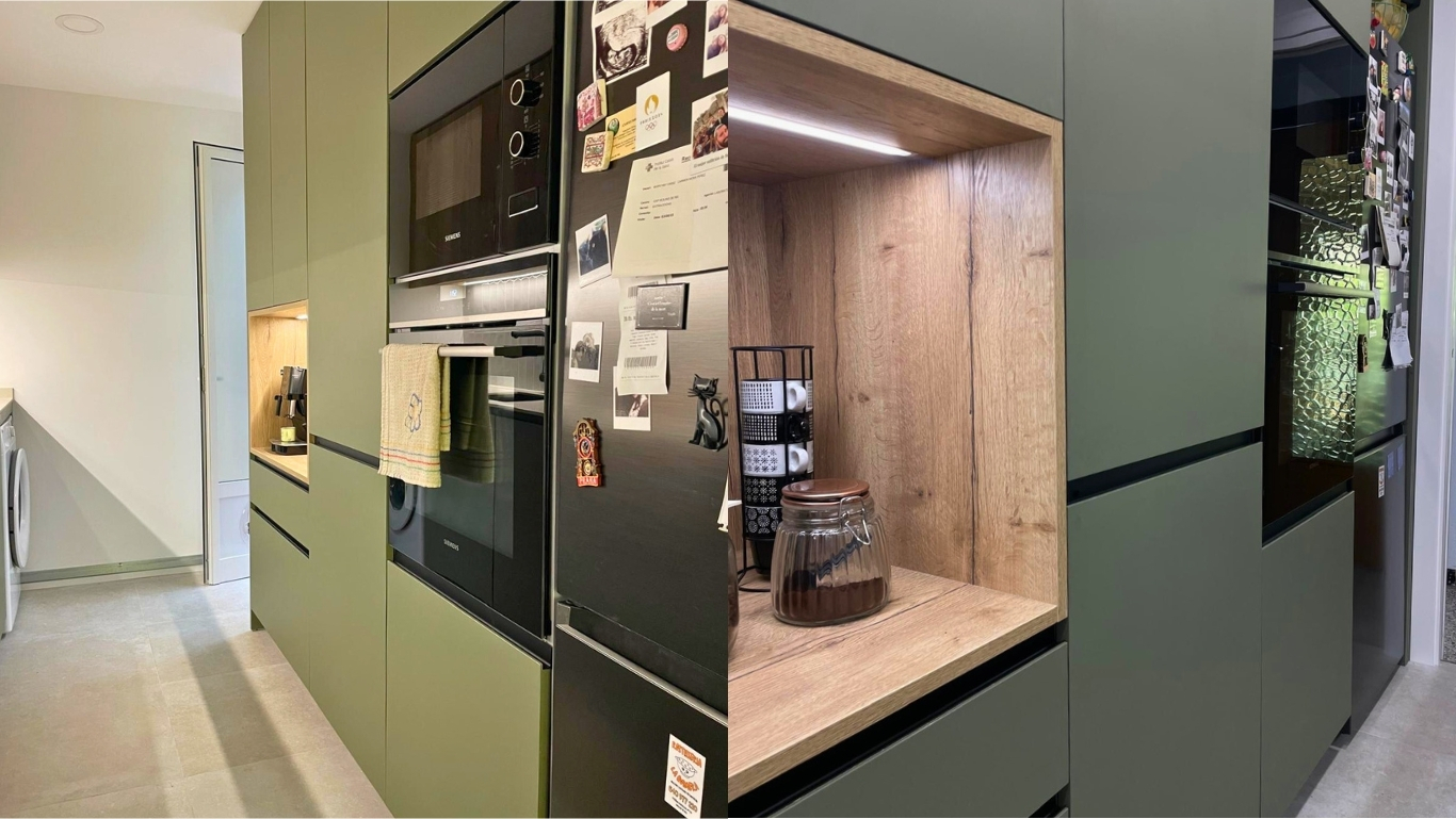 En esta vivienda de Molins de Rei, la cocina verde se convirtió en el eje de un proyecto de transformación que combina funcionalidad, diseño y carácter.